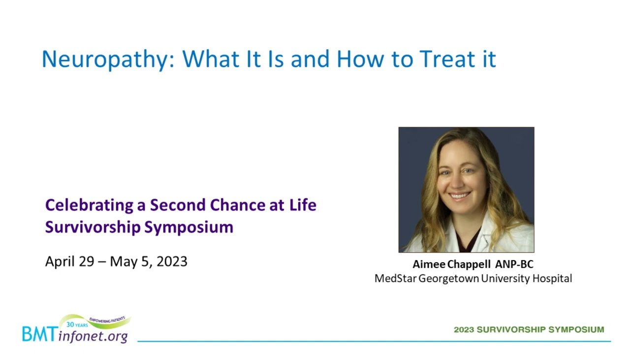 Neuropathy is common after certain types of chemotherapy. This presentation describes the two types of neuropathy patients may experience after a bone marrow or stem cell transplant, and strategies that can minimize symptoms and maximize quality of life.
