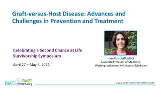 Graft-versus-host disease (GVHD) is a common complication after a bone marrow/stem cell transplant using donor cells (allogeneic transplant). This presentation will discuss current techniques to prevent GVHD, new drugs to treat acute and chronic GVHD and clinical trials testing new GVHD therapies.