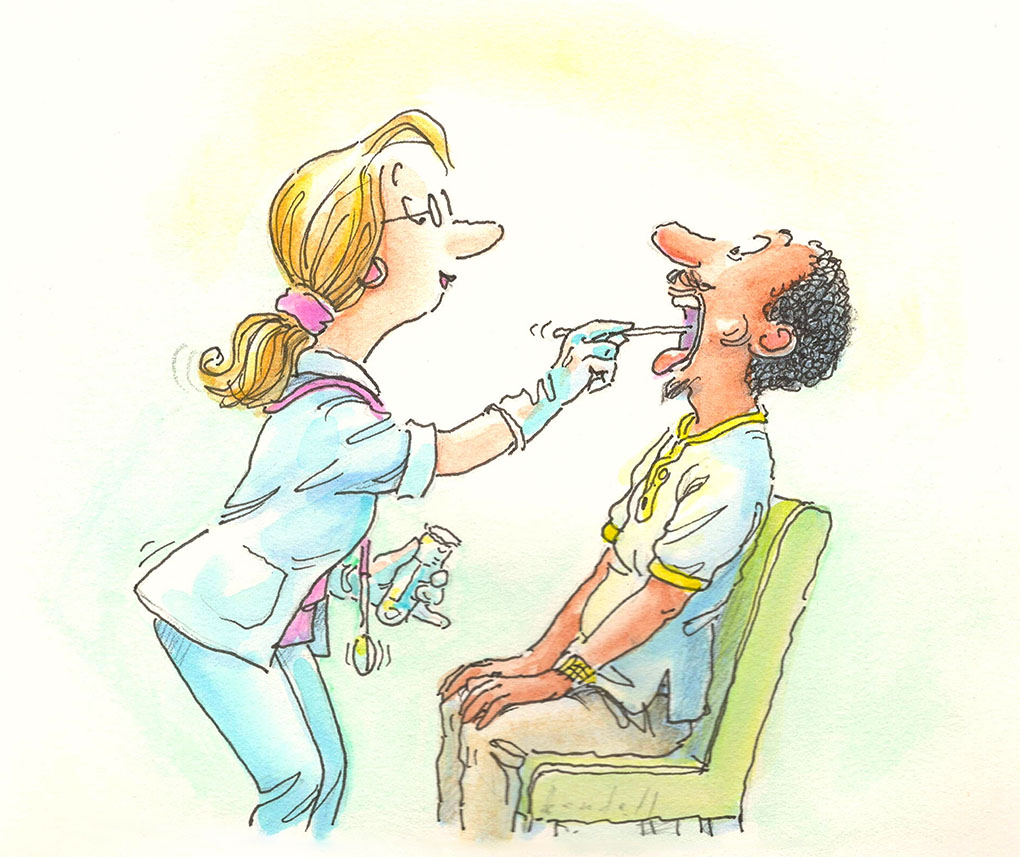 Your HLA type is determined by taking a swab of cheek cells from inside your mouth. The cells are sent to a special laboratory for analysis.