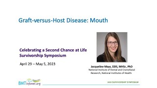 (00:16): Introduction of Speaker. It is my pleasure to introduce today's speaker, Dr. Jacqueline Mays. Dr. Mays is an immunologist, and a clinical trials dentist. She heads the Oral Immunobiology Unit within the Division of Intramural Research at the National Institute of Dental, and Cranial Facial Research, which is part of the National Institutes of Health (NIH). Her research focuses on how chronic Graft-versus-Host Disease, GVHD, develops after a transplant using donor cells, an allogeneic transplant; the causes of salivary gland dysfunction after transplant; and therapies to improve the treatment of oral GVHD with clinical trials directed toward advancing chronic GVHD therapy. Please join me in welcoming Dr. Mays.