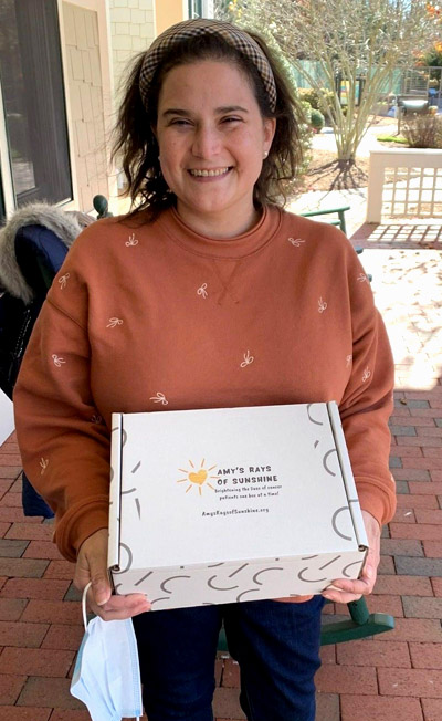 Durante el transcurso de su tratamiento y recuperación, Amy hizo algunos cambios radicales. Primero, abandonó su carrera como farmacéutica por el alegre trabajo de maestra de preescolar. En 2022, también fundó su propia organización sin fines de lucro, Amy's Rays of Sunshine -AROS- (Rayos de Sol de Amy). "Ojalá todos pudieran tener una 'Caja de Sol'", dice Amy. Y así, con su valor habitual, Amy simplemente buscó en Google "cómo crear una organización sin fines de lucro" y puso en marcha su forma de "retribuir". En 2023, AROS entregó más de 100 cajas de notas personales de apoyo y amor a pacientes trasplantados en todo el país.
