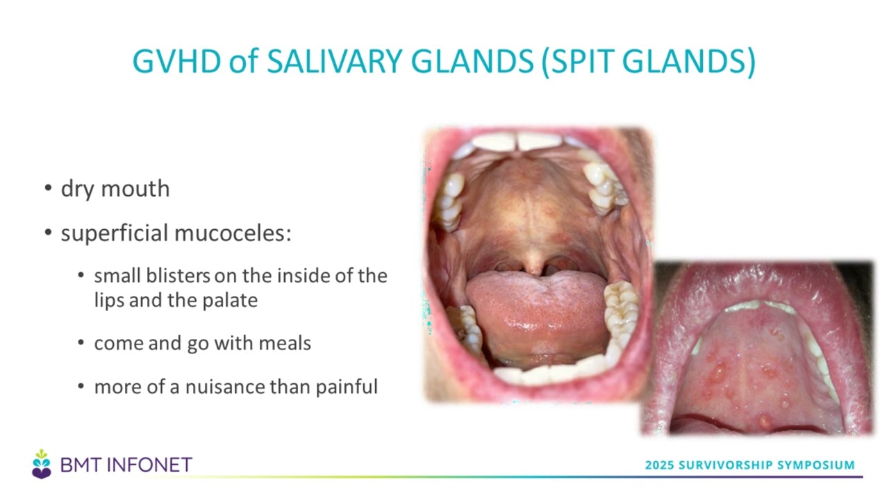 When graft-versus-host disease (GVHD) affects the mouth (oral GVHD), it can cause pain, problems with eating, and speech difficulties. This video discusses symptoms of oral GVHD, treatment options, and what patients can do to help manage the problem.