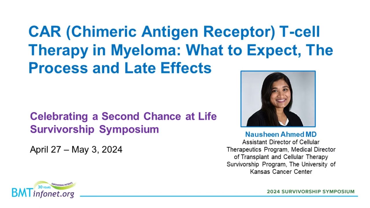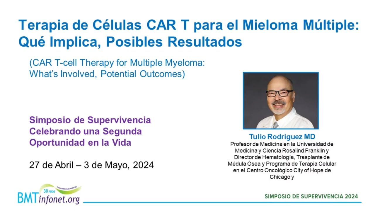 La terapia de Células CAR-T es una nueva terapia para pacientes con mieloma múltiple. Esta presentación explica qué es la terapia de Células CAR-T, cuál es su eficacia para los pacientes con mieloma y los posibles efectos secundarios.